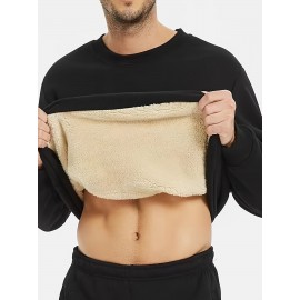 Cross Print Men's Crew Neck Sweatshirt Pullover For Men Fleece Sherpa Lined Sweatshirts For Winter Fall Long Sleeve Tops